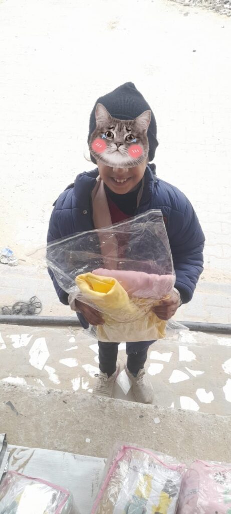 Over 200 children in different shelter schools or tented camps received clothes.